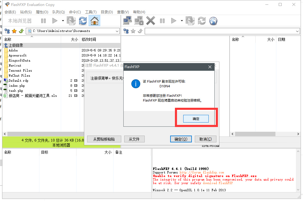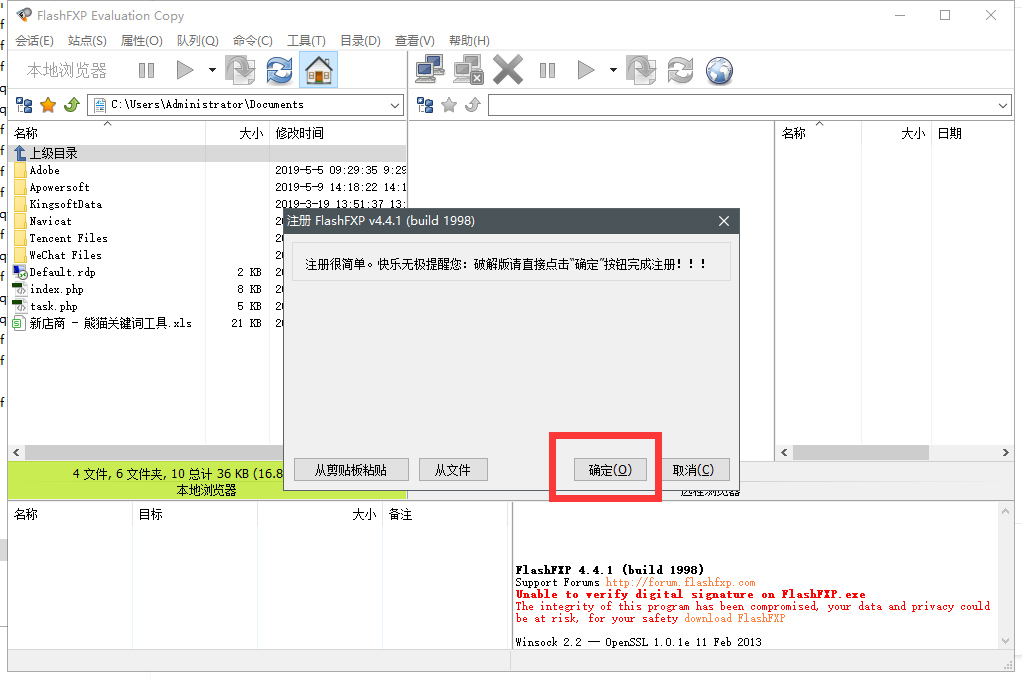 5.點擊“輸入代碼”后,彈出注冊框,點擊“確定”按鈕;